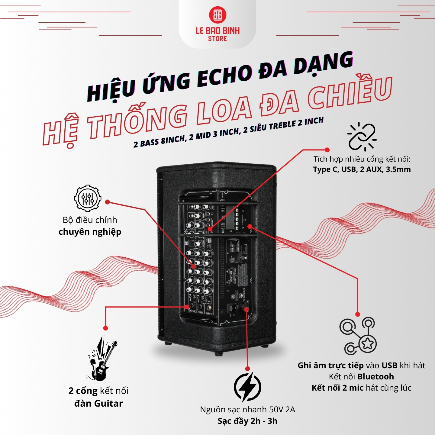 LOA XÁCH TAY CAO CẤP B01 – KARAOKE | Công suất Max 500W, Công nghệ hiện đại DSP – Power Class D, Kết nối Guitar – DJ biểu diễn – Bảo hành chính hãng 12 tháng